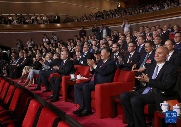 兩國元首共同欣賞由中俄兩國藝術(shù)家聯(lián)袂呈現(xiàn)的精彩文藝演出。